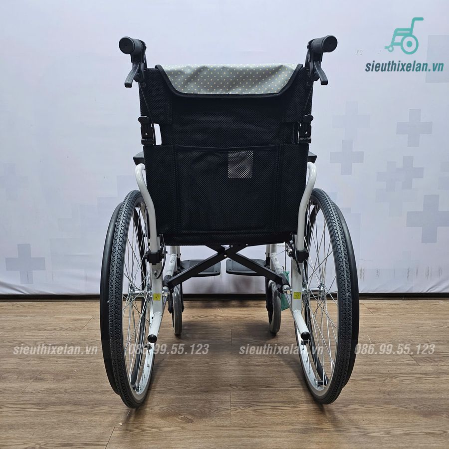 Xe lăn Karma có trọng lượng chỉ nặng 12kg, kích thước sau khi xếp gọn chỉ có chiều dài 105cm, chiều cao 92cm, dễ dàng cho vào cốp xe ô tô hoặc di chuyển bằng xe máy thuận tiện.